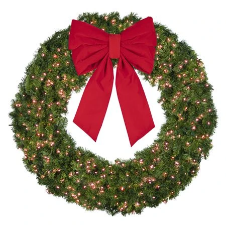 60″ Deluxe Oregon Fir Wreath, Lit with Red LEDs