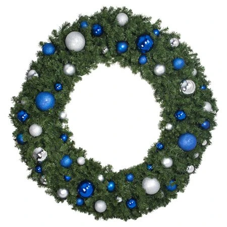 72″ Decorated Deluxe Oregon Fir Wreath – Unlit – Blue and Silver Décor