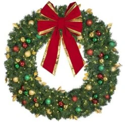 60″ Lit LED Warm White Decorated Wreath – Traditional Décor – Bow Option Available