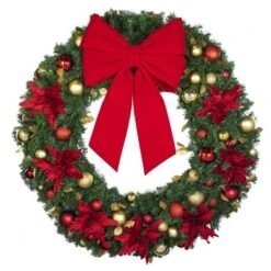 60″ Unlit Decorated Wreath – Elegant Poinsettia – Bow Option Available