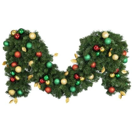 Decorated 9′ x 18″ Garland Unlit, Traditional
