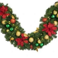 Decorated 9′ X 14″ Garland Lit, Elegant Poinsettia